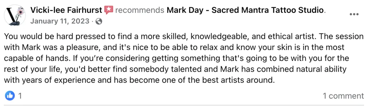 You will be warmly welcomed to one of Ireland’s most renowned studios, based in Killorglin, County Kerry - Mark Day tattoo/ Sacred Mantra Tattoo
